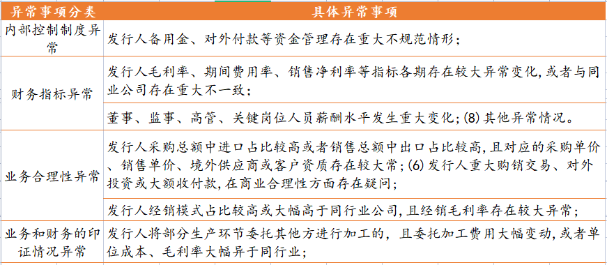 (2)需要扩大核查范围的异常事项: