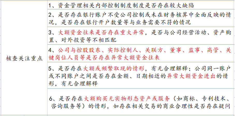 内部银行流水核查要点和内容