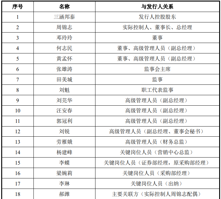 报告期内发行人控股股东、实际控制人、发行人主要关联方、董监高(不含独立董事)、关键岗位人员如下: